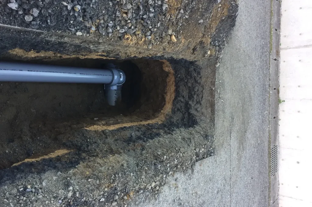 宅地内に設置された公共マスに生活汚水管を接続し生活汚水を公共下水道に排出する工事です。