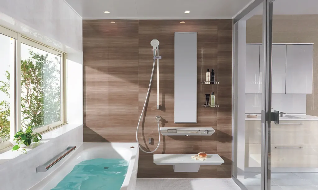 お風呂に段差のないバリアフリー設計なので、子供さんからお年寄りまで安心してリラックスタイムが過ごせます。時間がたってもお湯が冷めにくい、嬉しい仕様もついてきます。面倒なお風呂掃除も、もともとよごれが付きにくいからあっというまに完了!
