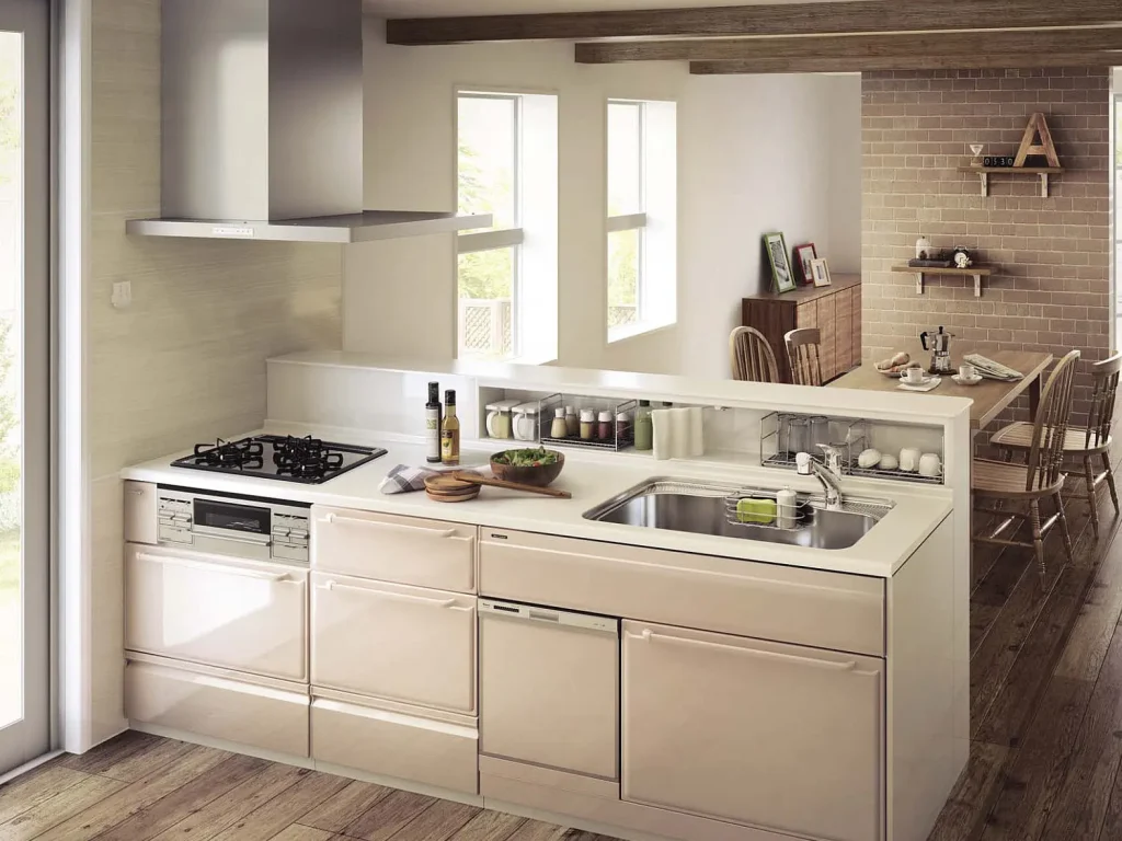 明るい天板のキッチンは、毎日の家事を楽しくさせます。大容量の引き出し収納で、ぱっとしまえるお片付け上手なキッチンへ。汚れがつきにくく、お手入れ簡単!憂鬱なキッチンのお掃除が楽になります。