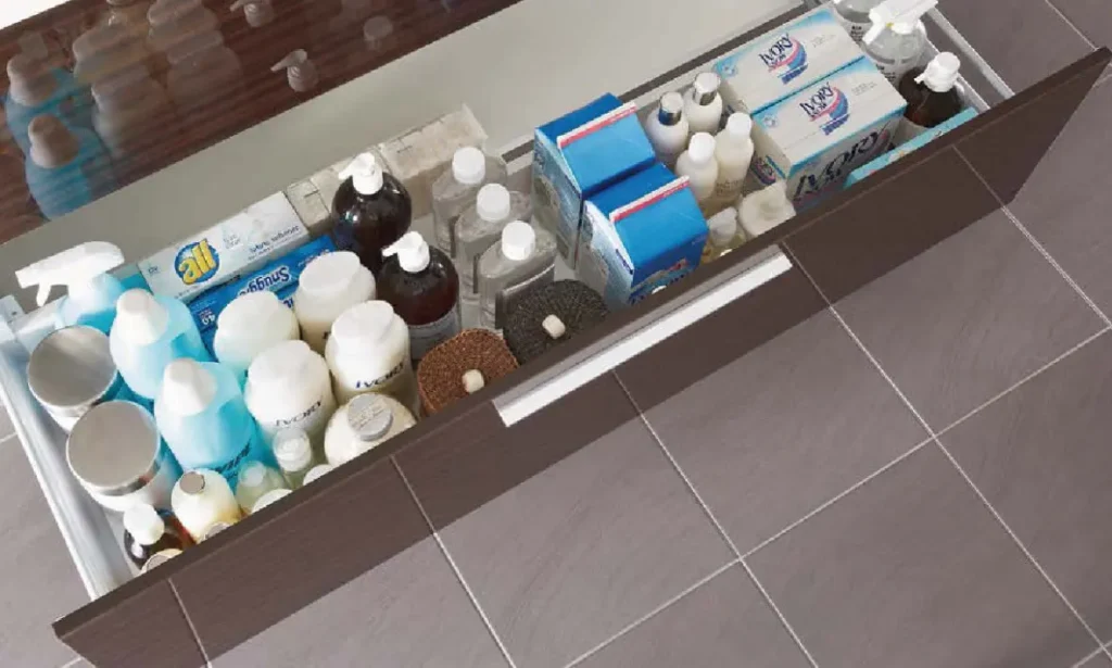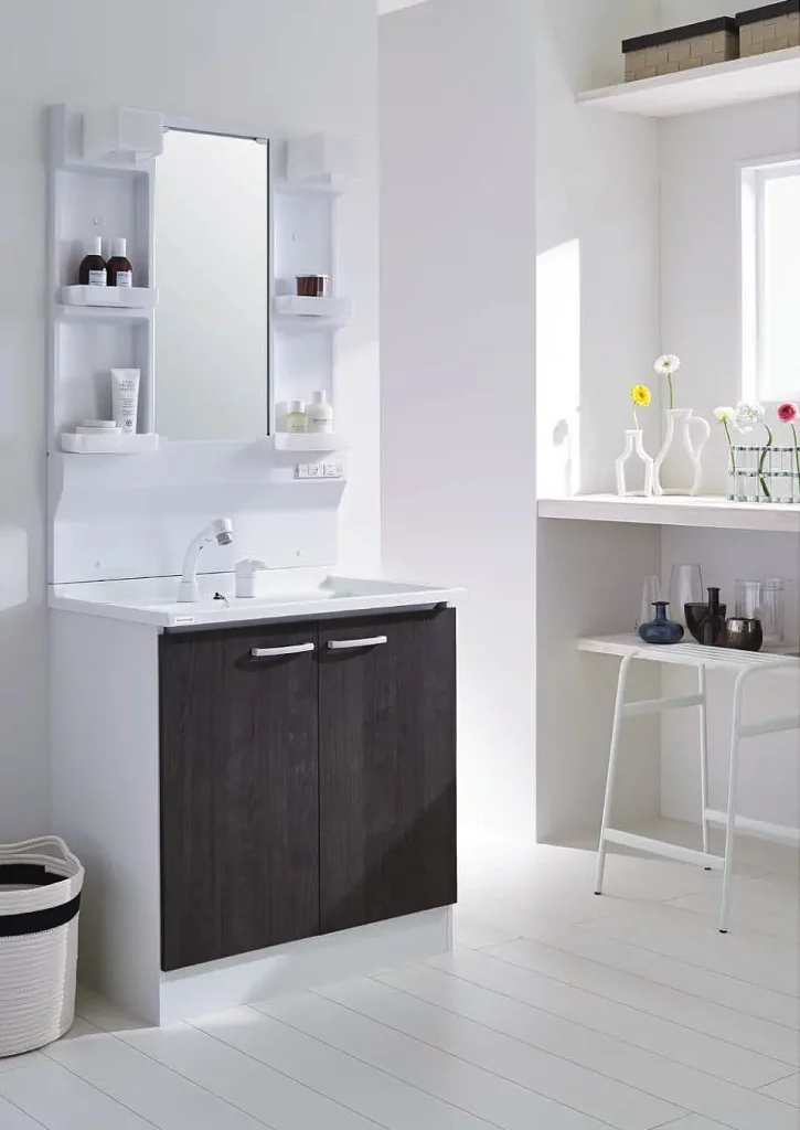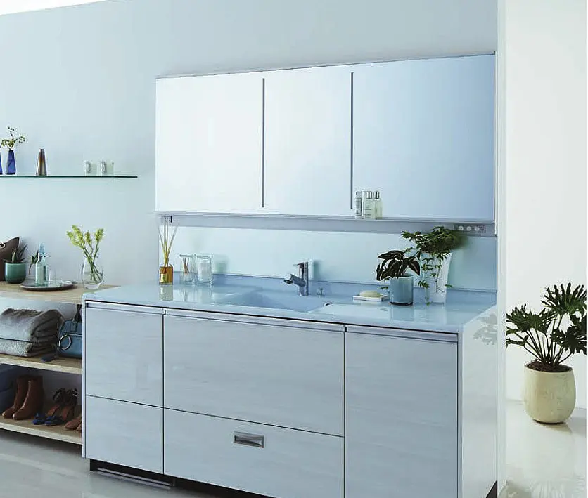 使いやすさを追求した新しい洗面台のおかげで、毎朝の支度がはかどります。ごちゃつきがちな洗面台も、大容量収納ですっきり。たくさんの工夫のおかげで、お手入れも楽々できます。